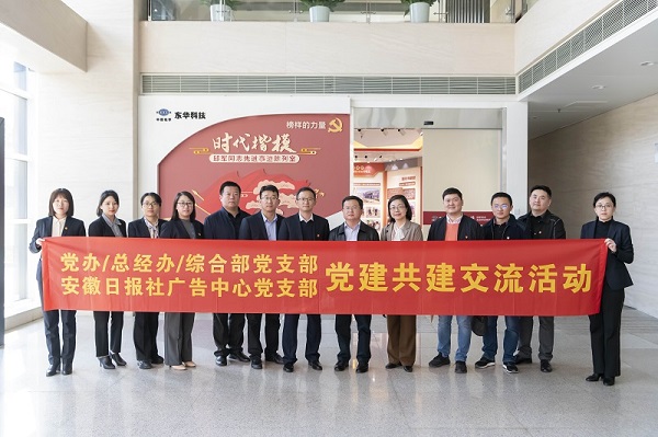 3月10日,安徽日?qǐng)?bào)社廣告中心黨支部書記、廣告中心主任、安徽傳媒信息廣告公司總經(jīng)理王學(xué)菊一行到訪東華科技,與黨委辦公室/總經(jīng)理辦公室/綜合管理部黨支部開展黨建共建交流活動(dòng),并參觀了“時(shí)代楷?!鼻褴娡鞠冗M(jìn)事跡陳列室。公司黨委副書記、紀(jì)委書記桑艷軍出席活動(dòng)。